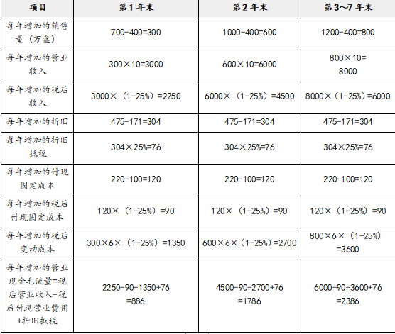 ③投产后的营业现金毛流量估算: