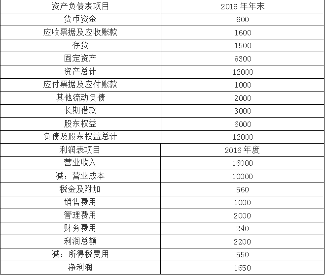 (1)甲公司2016年主要财务数据: