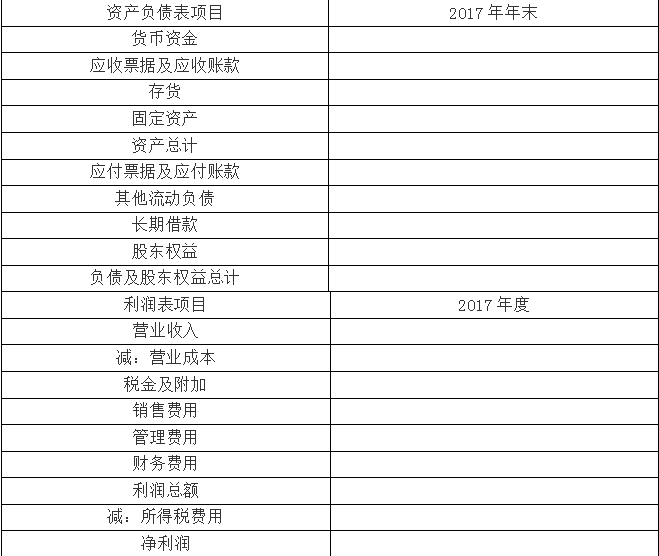 (2)假设2017年甲公司除货币资金、长期借款外所有资产和负债与营业收入保持2016年的百分比关系,除财务费用和所得税费用外所有成本费用与营业收入的占比关系维持2016年水平,2017年新增财务费用按新增长期借款期初借入计算,所得税费用按当年利润总额计算。为满足资金需求,甲公司根据要求(1)的初步测算结果,以百万元为单位向银行申请贷款,贷款利率8%,贷款金额超出融资需求的部分计入货币资金。预测公司2017年末资产负债表和2017年度利润表(结果填入下方表格中,软件内的表格是图片,无法填写,仅供参考 不用列出计算过程)。