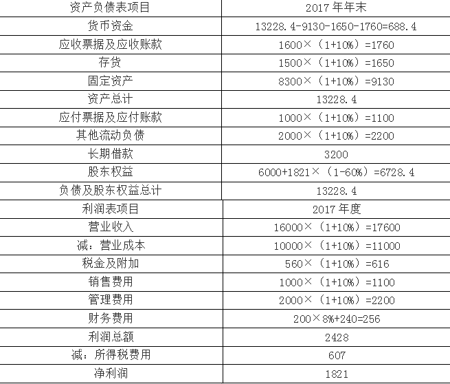 (3)销售部门预测2017年公司营业收入增长率10%。