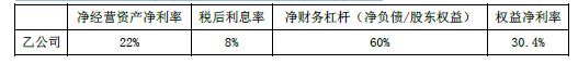 乙公司权益净利率=22%+(22%-8%)×60%=30.4%