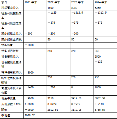 (2)净现值=-9600+3150×(P/F,14%,1)+3912.50×(P/F,14%,2)+8087.50×(P/F,14%,3)=-9600+3150×0.8772+3912.50×0.7695+8087.50×0.6750=1632.91(万元)
