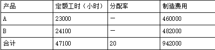 制造费用分配率=942000/47100=20(元/小时) A 产品制造费用=23000×20=460000(元)
