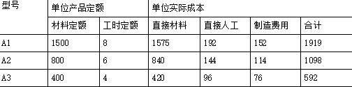 完工产品定额工时=1000×8+2000×6+400×4=21600(小时) 直接人工成本分配率=619200/(21600+4200)=24