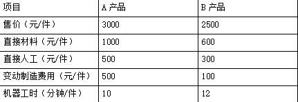 (1)A 产品每分钟边际贡献=(3000-1000-500-500)/10=100(元) B 产品每分钟边际贡献=(2500-600-300-100)/12=125(元)