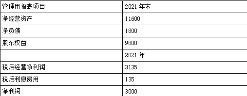 税后经营净利润=净利润+税后利息费用=3000+135=3135
