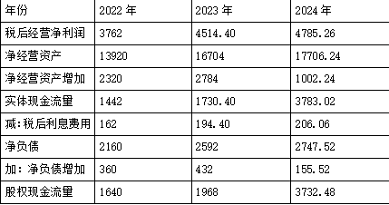 实体现金流量=税后经营净利润-净经营资产增加 股权现金流量=实体现金流量-债务现金流量=实体现金流量-(税后利息费用-净负债增加)=实体现金流量-税后利息费用+净负债增加