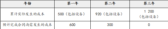 在计算履约进度时,应将自第三方采购的设备款从已发生的成本中扣除,即2×20年履约进度=(500-100)/(1100-100)×100%=40%。