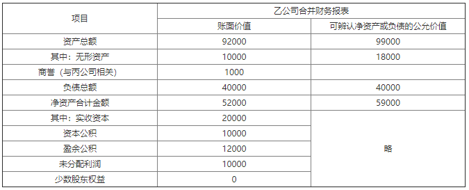 ①乙公司合并财务报表中确认的与丙公司相关的商誉1000万元不在甲公司编制的合并财务报表中体现;
