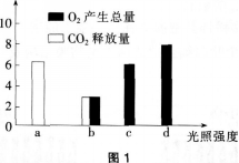 如图1表示某植物在不同光照强度下,单位时间内CO2释放量和O2产生总量的相对变化。对植物生理过程分析正确的是( )。