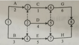 某双代号网络计划如下图所示(时间单位:天),存在的绘图错误是( )。