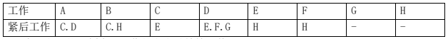 某工程工作逻辑关系如下表,H 工作的紧前工作有( )。