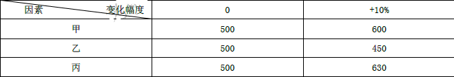 某技术方案进行单因素敏感性分析的结果是:甲因素下降50%时内部收益率上升了20%;乙因素上涨30%时内部收益率上升了10%;丙因素上涨10%时内部收益率下降了1