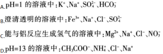 单选题 在指定溶液中一定能大量共存的离子是( )。《》()