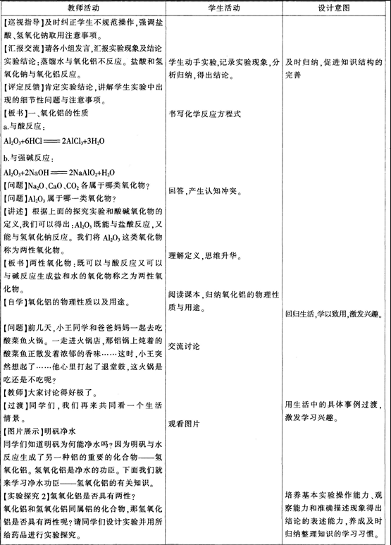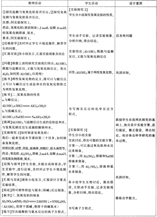 (1)氢氧化钠溶液是强碱,能够溶解氢氧化铝沉淀。(2)教学目标