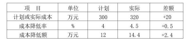 案例题 某项目某月的实际成本降低额比目标值提高了 2.4 万元(相关参数见下表)。