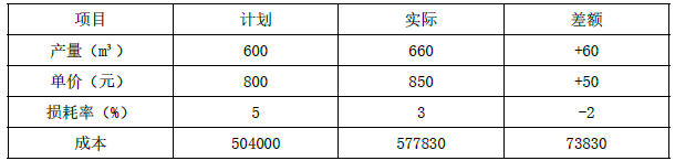 第二次替换与第一次替换的差额=589050-554400=34650 元,说明由于单价的提高,成本增加34650 元;