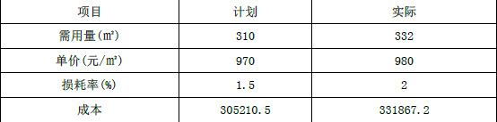 ③损耗率对成本的影响:332×980(1+2%-1-1.5%)=1626.800 元。