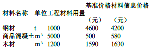 (1)钢材:(4200-4600)/4600×100%=-8.70%<-5%,应调整价差