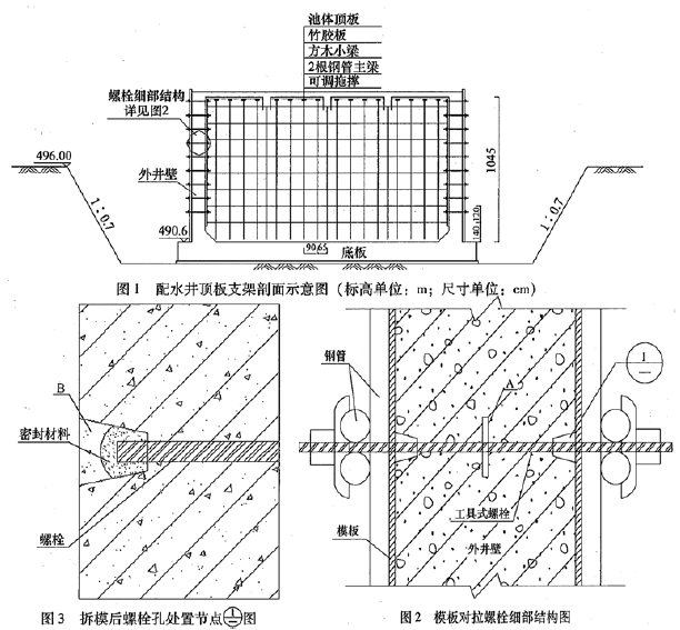 理由∶本工程是中水工程的配水井,设计水深9m,容易造成池壁的渗漏,这种对拉螺栓可以有效地阻止水沿着螺栓杆渗漏,也可确保混凝土池壁的厚度。