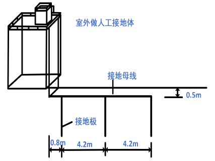 2.(1)图中接地母线埋深 0.5m 不符合规定。接地装置顶面埋设深度不应小于 0.6m,且应在冻土层以下。(2)图中接地极间距 4.2 米不符合规定;圆钢、角钢、铜管、铜棒、铜管等接地极应垂直埋入地下,间距不应小于 5m。(3)图中接地极距外墙 0.8 米不符合规定;人工接地体与3.(1)报警阀的安装应在供水管网试压、冲洗合格后进行。