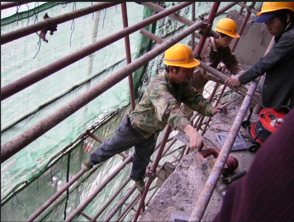 336.图为工人安装幕墙的图片,下列关于该图片说法正确的是()。