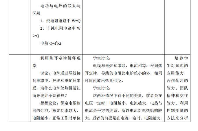 会解释生活中一些电热现象,通过学习电。热的利用与防止,学会辩证地看待问题。