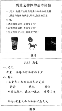 教师:很好,同学们都能够通过学习自己举例子,说明已经掌握了质量的概念,质量的大小与物体的状态无关。