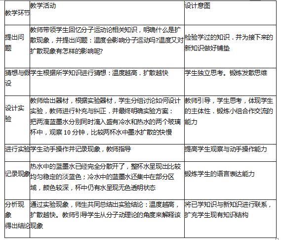 (1)不同物质在相互接触时彼此进入对方的现象叫作扩散。 (2)教学设计: