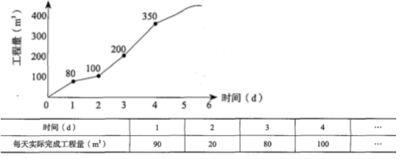 某混凝土工程计划累计完成工程的S曲线和每天实际完成工程量如下图和下表所示,则第4天下班时刻该工程累计拖欠的工程量为()m^3。