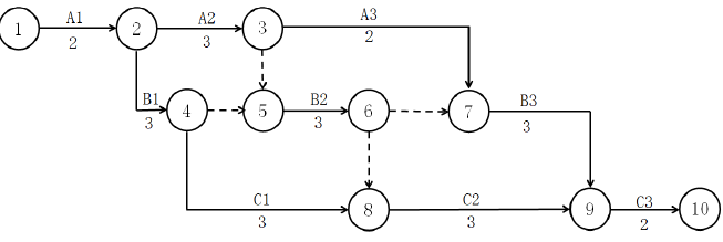 某双代号网络图如下图所示,以下正确的是( )。