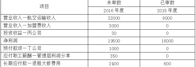 (2)2015年6月,甲公司开始经营航空快递业务,以经营租赁方式租入2架飞机,租期五年。管理层按实际飞行小时和预计每飞行小时维修费率计提租赁期满退租时的大修费用。2016年1月起,甲公司航空运输服务降价40%,业务出现爆发式增长。