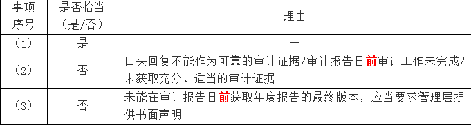 (3)A注册会计师未能在审计报告日前获取甲公司2016年年度报告的最终版本,因此,未要求管理层提供有关其他信息的书面声明。
