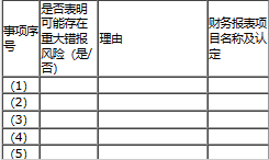 1.针对资料一第(1)至(5)项,结合资料二,假定不考虑其他条件,逐项指出资料一所列事项是否可能表明存在重大错报风险。如果认为可能表明存在重大错报风险,简要说明理由,并说明该风险主要与哪些财务报表项目的哪些认定相关(不考虑税务影响)。将答案直接填入答题区的相应表格内。