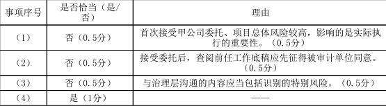 (2)针对资料三第(1)至(4)项,假定不考虑其他条件,逐项指出审计计划的内容是否恰当。如不恰当,简要说明理由。将答案直接填入答题区的相应表格内。
