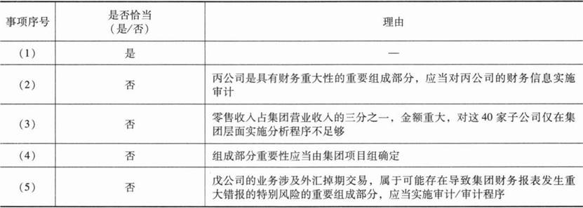 4.(1)否。理由:①该错报为系统性错报;②可能发生于其他组成部分。改进建议:集团项目组应当关注并汇总其他组成部分的这类错报,汇总考虑该类错报对集团财务报表的影响。