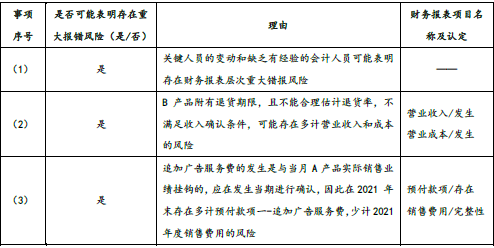 (1)针对资料一第(1)至(5)项,结合资料二,假定不考虑其他条件,逐项指出资料一所列事项是否可能表明存在重大错报风险。如果认为可能表明存在重大错报风险,简要说明理由,并说明该风险主要与哪些财务报表项目的哪些认定相关(不考虑税务影响)。