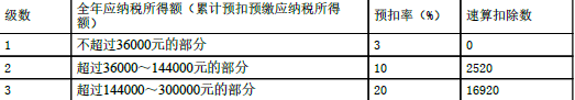 将居民个人取得的全年一次性奖金,除以12个月,按其商数依照按月换算后的综合所得税率表确定适用税率和速