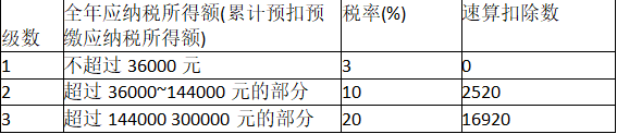 (2) 48000÷12=4000 (元),适用按月换算后的综合所得税率表,税率为10%,速算扣除数为210,王某取得的年终奖应缴纳的个人所得税额=48000× 10%-210=4590 (元)。