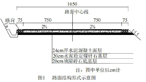 案例题 某单位承接三级公路水泥路面工程,全长 3.5Km,双向四车道,面层宽 15m,基层宽 15.5m,底基层宽 16m,路面结构如图 1 所示,