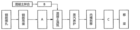 4.A代表:内模安装施工工序;B代表:混凝土运输泵送施工工序;C代表:预应力张拉工序。