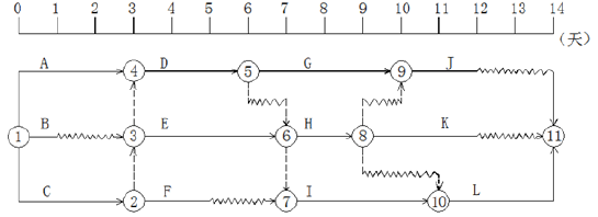 某项目分部工程双代号时标网络计划如下图,关于该网络计划的说法,正确的有()。