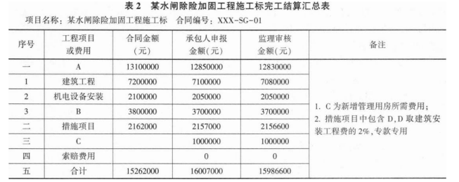 2.事件2表2中A、B、C、D分别代表的工程项目或费用或名称:
