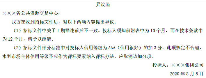 (2)招标人应当自收到异议之日起3 日内作出答复。招标人作出答复前,应当暂停招标投标活动。