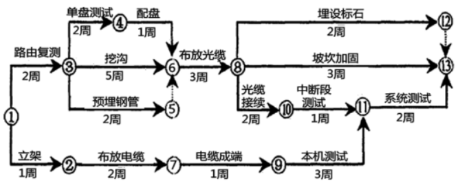 关键工作有:路由复测、挖沟、布放光缆、光缆接续、中继段测试、系统测试。