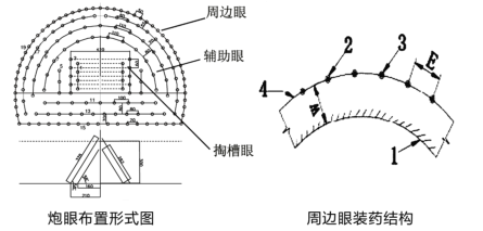 掏槽眼的作用是将开挖面上某一部位的岩石掏出一个槽,以形成新的临空面,为其他炮眼的爆破创造有利条件。周边眼的作用是爆破后使坑道断面达到设计的形状和规格。
