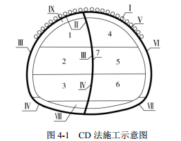 1.(1)Ⅰ:超前支护;7:拆除中隔壁;Ⅷ:仰拱及填充混凝土;Ⅸ:拱墙二次衬砌。