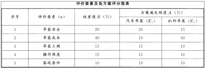 (3)比较各方案的技术效率,如吊装技术中的起吊吨位,每吊时间间隔,吊装直径范围,起吊高度等。