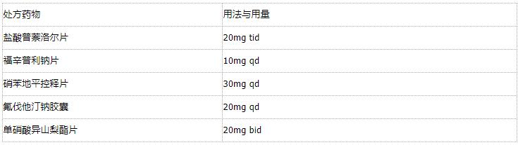 患者,女,72岁,患有高血压、冠状动脉粥样硬化性心脏病、高脂血症。最近1个月一直服用下列处方药物控制病情: