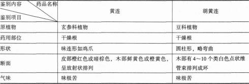 黄连与胡黄连药名相近,下表所列药材鉴别内容存在错误的鉴别项目有